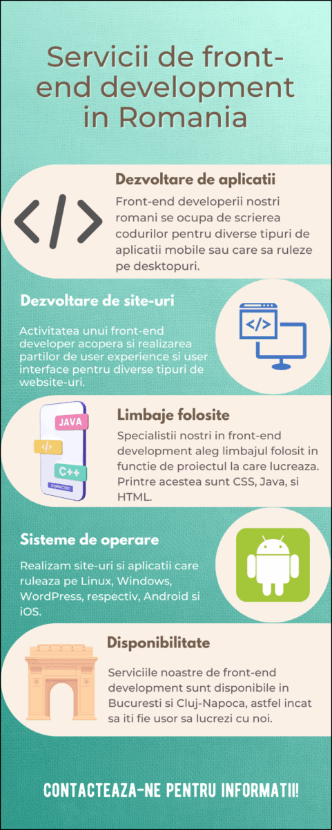 Pentru mai multe informatii despre serviciile noastre si front end developerii nostri din Romania, nu ezita sa ne contactezi.